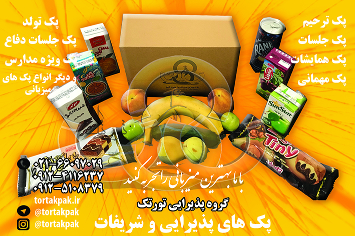 گروه تورتک در زمینه فرآهم آوری پک های میوه ، غذا ، افطاری و دیگر پک های پذیرایی برای مراسمات ترحیم ، مهمانی ها ، همایشات ، جلسات دفاع و دیگر جلسات فعالیت می نماید
